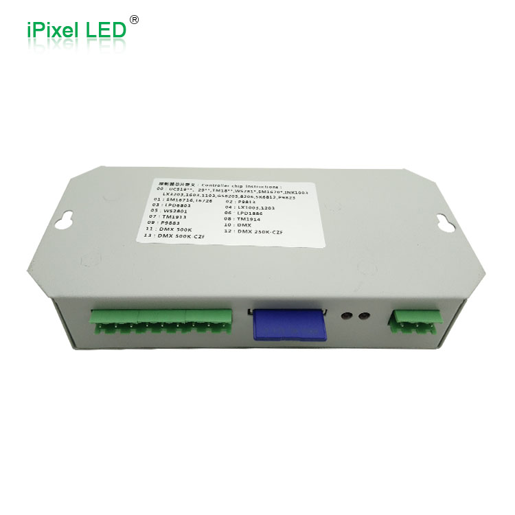 3.控制器有1个输出口,最大可支持512/2048像素(DMX灯光最大支持512像素)。